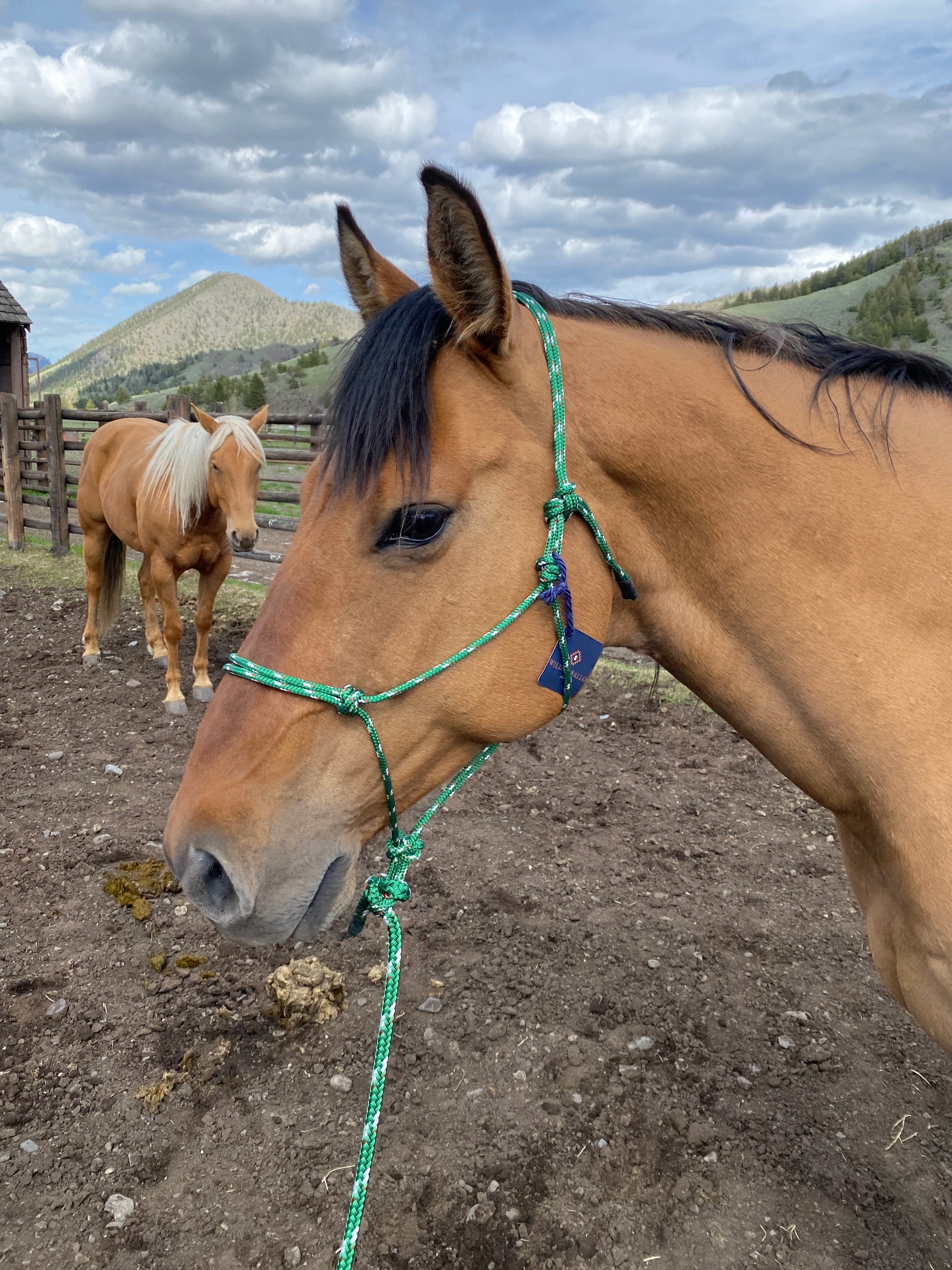 Hand tied with premium polyester yacht braid rope. Quarter Horse size. Lead is 11.5 foot.